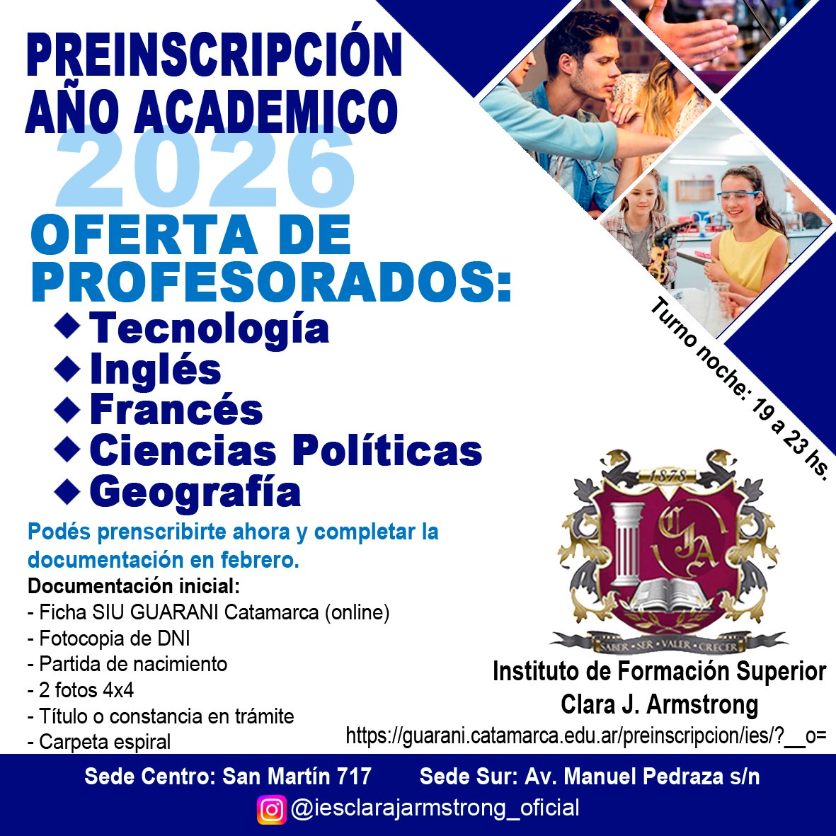 - Por alguna consulta sobre el listado de OMP comunicarse por via mail a: iesarmstrong@catamarca.edu.ar
