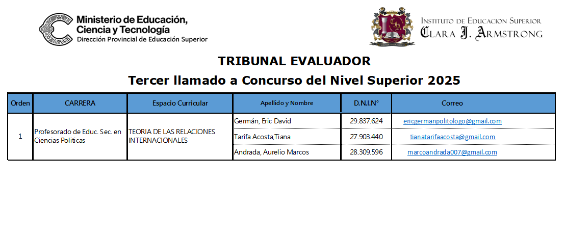PUBLICACIÓN DE INTEGRANTES DEL TRIBUNAL DEL 3° CONCURSO -2025