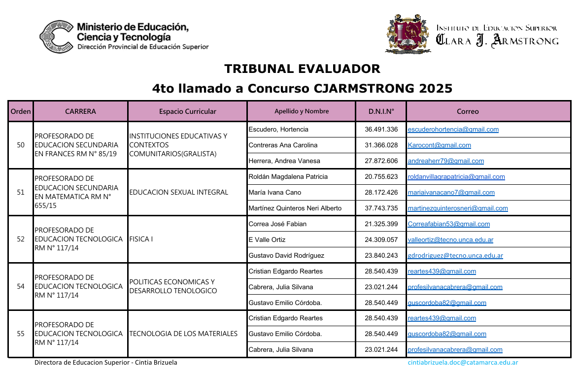 - Por alguna consulta sobre el listado de OMP comunicarse por via mail a: iesarmstrong@catamarca.edu.ar