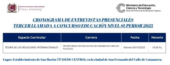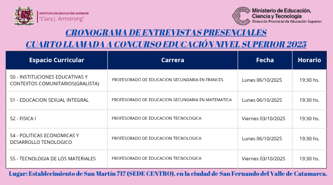 Se informa a todos/as los/as interesados/as en concursar para cubrir interinatos y suplencias de Nivel Superior – 2025, que el formulario de inscripción se encuentra disponible tal como lo establece el Cronograma aprobado por el Ministerio de Educación, Ciencia y Tecnología de la provincia.