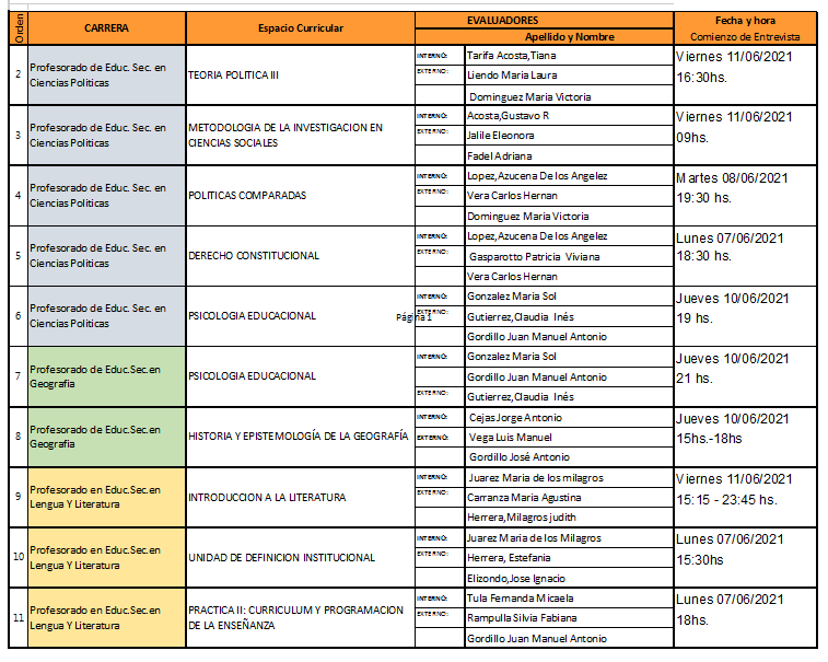 DETALLES DE LOS HORARIOS DE LAS ENTREVISTAS y LINK